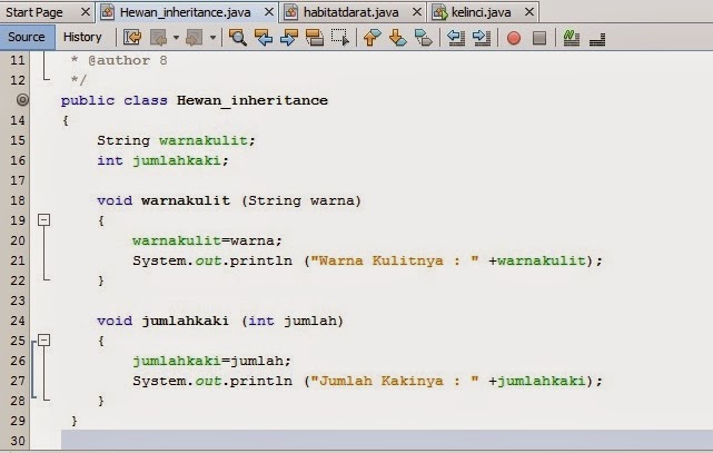 3. Membuat kelas untuk subclass dengan nama bebas (contoh : habitatdarat)